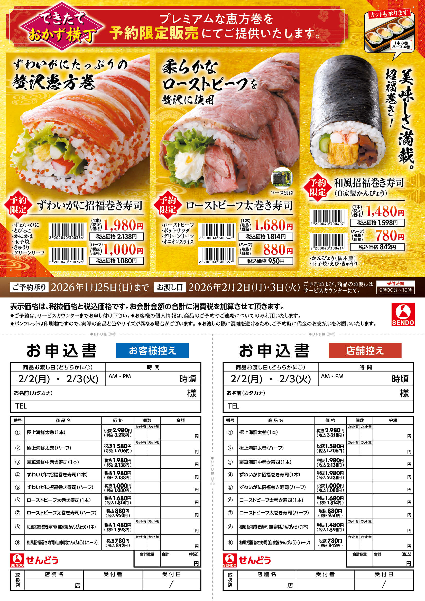 当社オリジナル予約限定の恵方巻を取り揃えました。